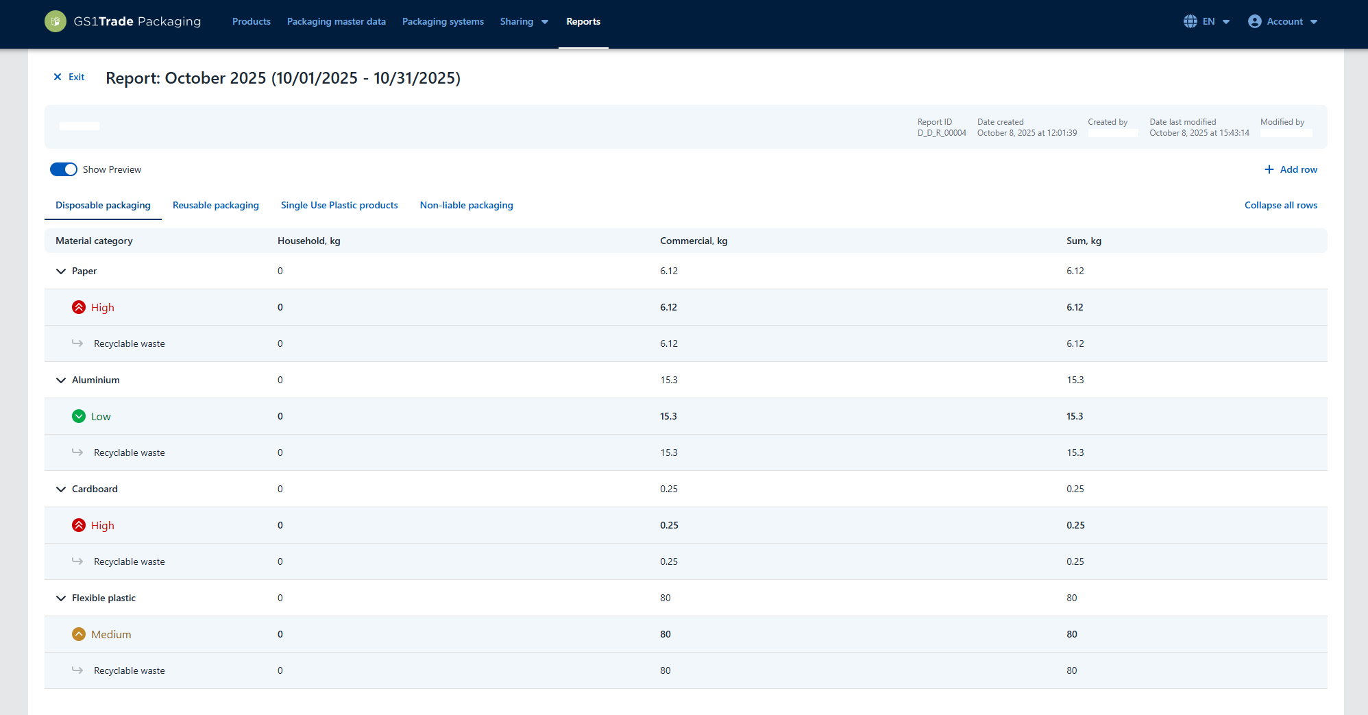 The first version of the reporting module is now live in GS1Trade Packaging. This means you can now generate a report based on your master data and begin familiarizing yourself with the functionalities.