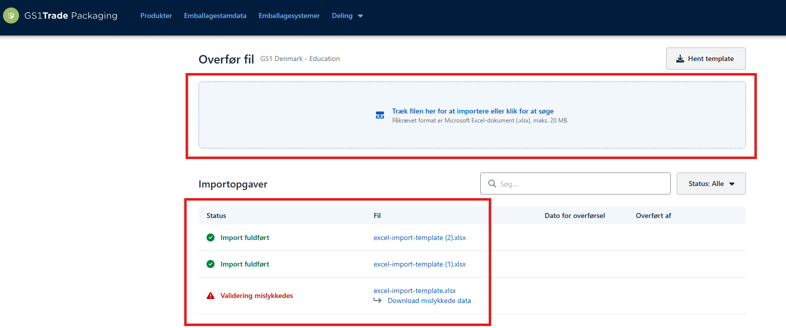 The import template must be downloaded inside GS1Trade Packaging. The template comes with a unique ID, so it is important that you always download templates from your own workspace.