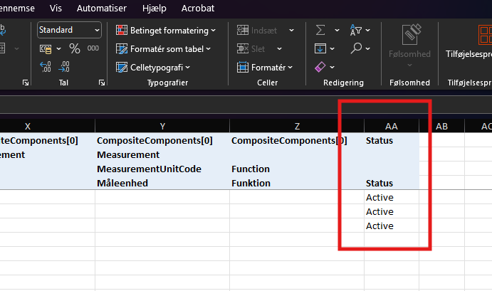 Please note: The data import file can contain a maximum of 200 rows per tab – e.g. 200 products, 200 units, and 200 components. If you need to import more, download a new file and continue your work there.