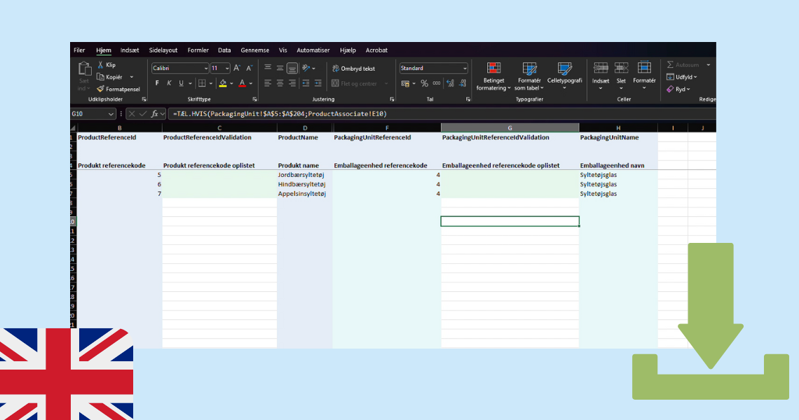 The Excel import template allows you to import your product and packaging master data into GS1Trade Packaging. In other words, you can use the import template to upload data about products, packaging components, and packaging units, as well as linking components, units, and products together.